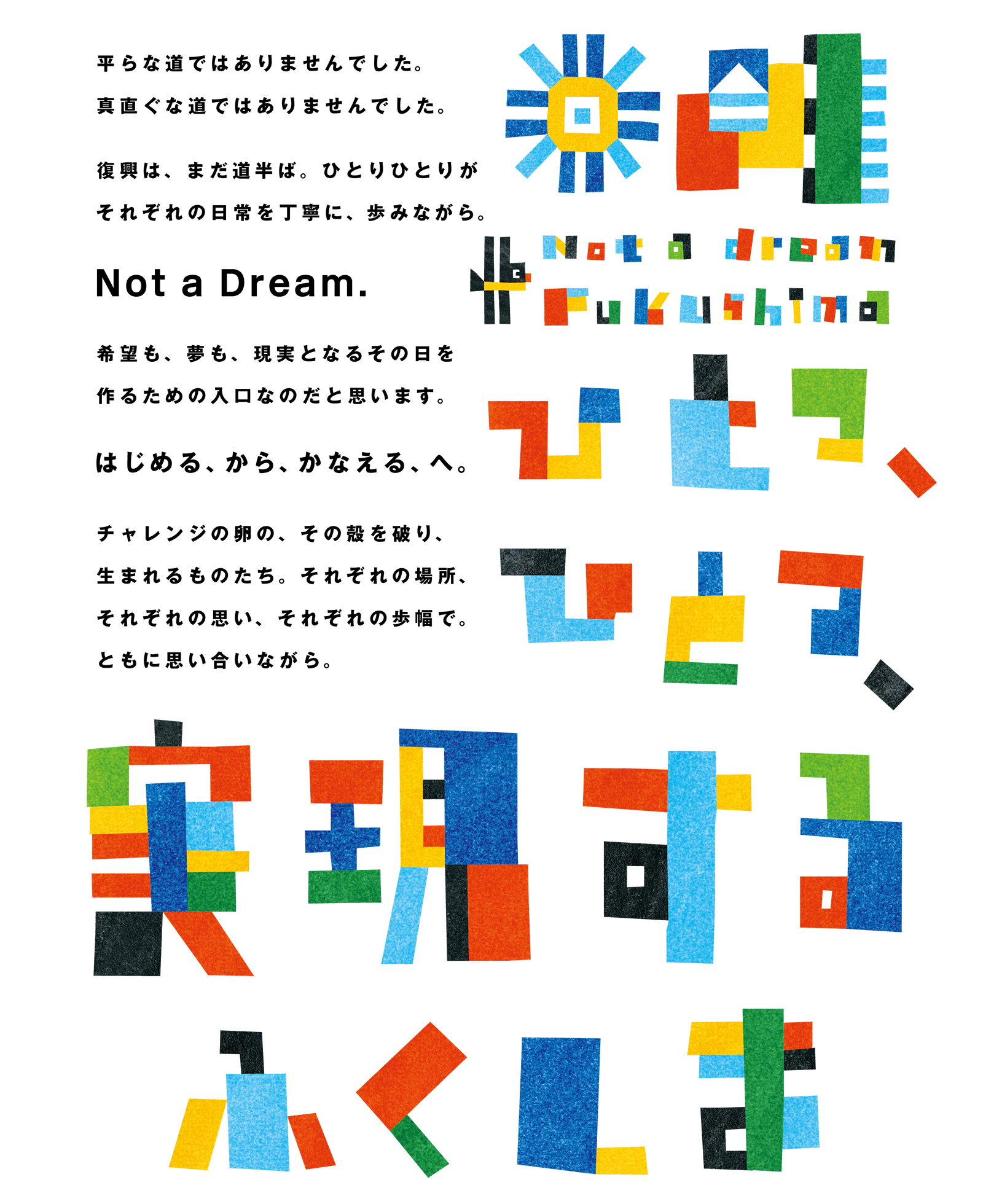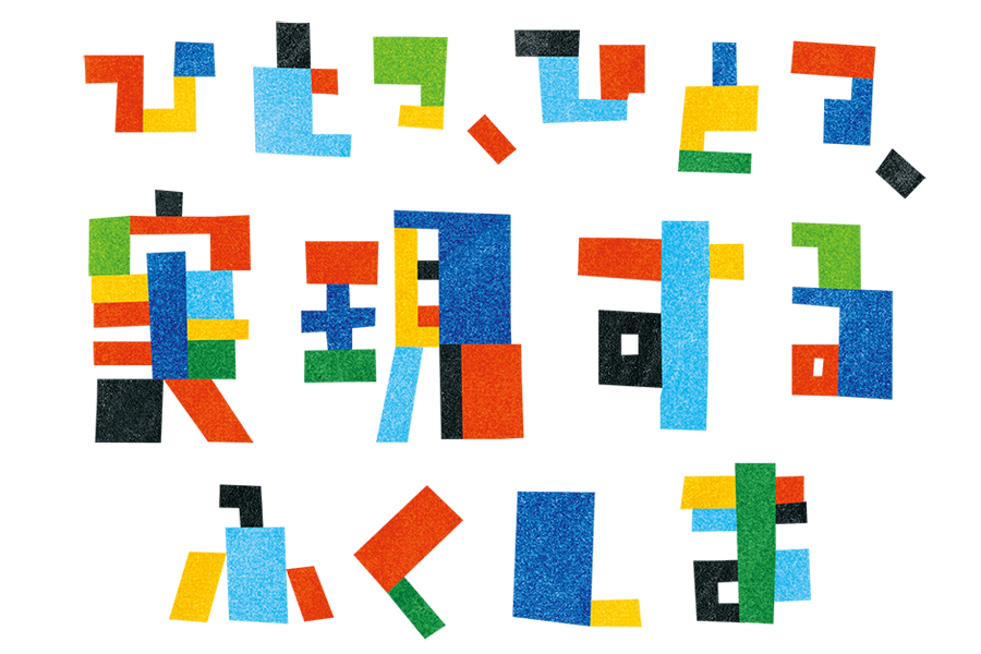 福島県のスローガン「ひとつ、ひとつ、実現する ふくしま」に、