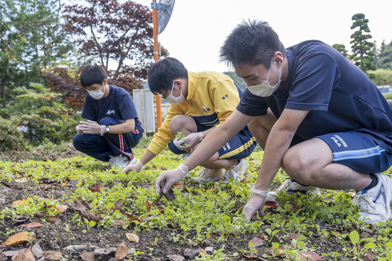 栽培技術を学ぶだけでなく、地域の方々の協力をいただきながら、あえて手間のかかる有機農業に挑戦することで、知恵と工夫で物事を解決していく力や、地域とのつながりの大切さを学びます。
