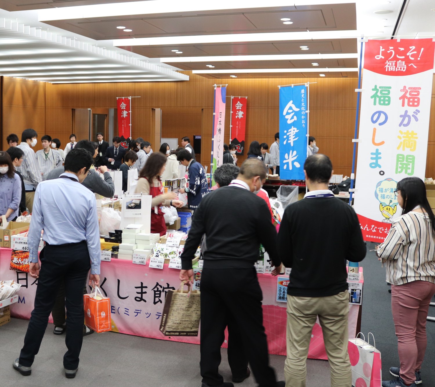 愛知県内でもふくしまの魅力を発信するために、社内外のイベント会場での物産展や、社内食堂でふくしまの海産物などを使用したフェアを開催しています。