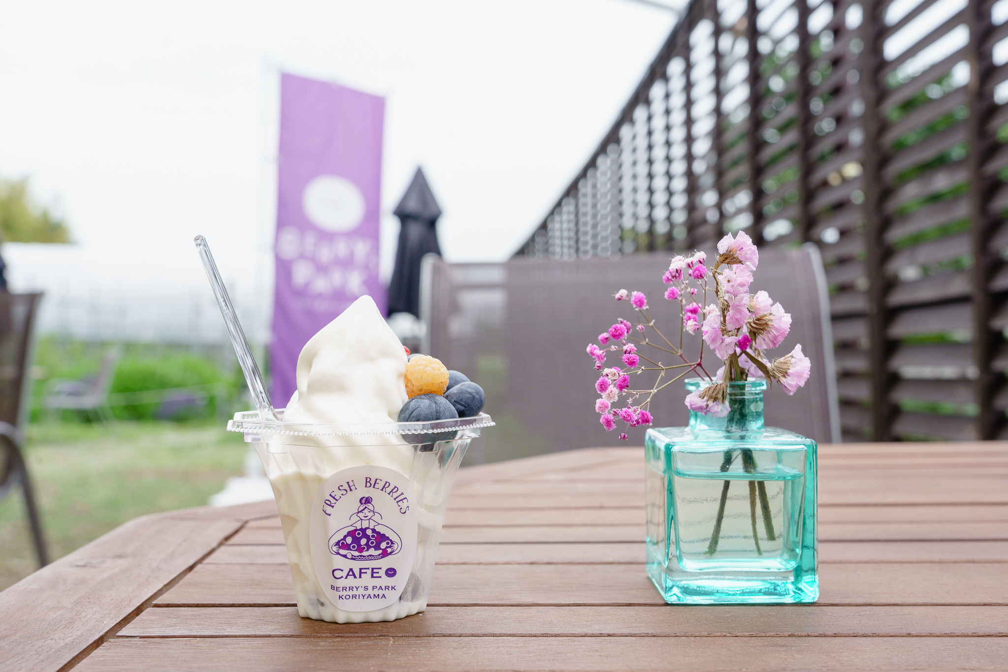 「ベリーズパーク郡山」は、2021年6月にオープンしたブルーベリー農園です。県内で初めてブルーベリーの養液栽培を本格導入し、現在では100種類以上、約1,200鉢のブルーベリー・木いちごなどを栽培しています。整腸作用や抗酸化作用などがあると言われているブルーベリーを広く知っていただけるよう、摘み取り体験のほか、ブルーベリーを使ったメニューが味わえるカフェも併設しました。