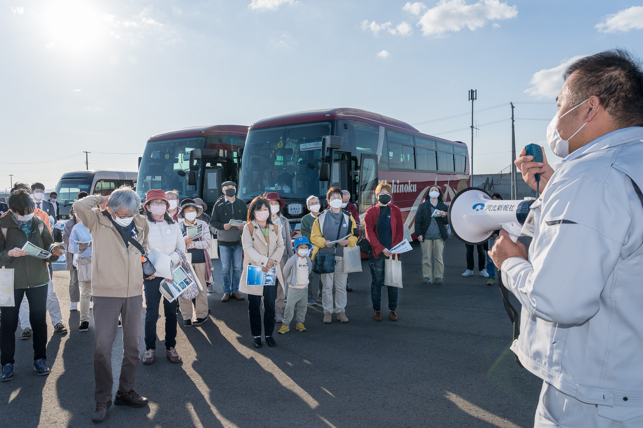 宮城県仙台市の河北新報社では、東日本大震災からの復興支援を目的とする「今できることプロジェクト」を通じ、賛同企業や読者の方々とさまざまな取り組みを実施してきました。活動11年目となる2022年度、初めて県境を越えて福島県の相双地域を視察するバスツアーを実施し、仙台圏を中心に約40名の皆さんが参加されました。