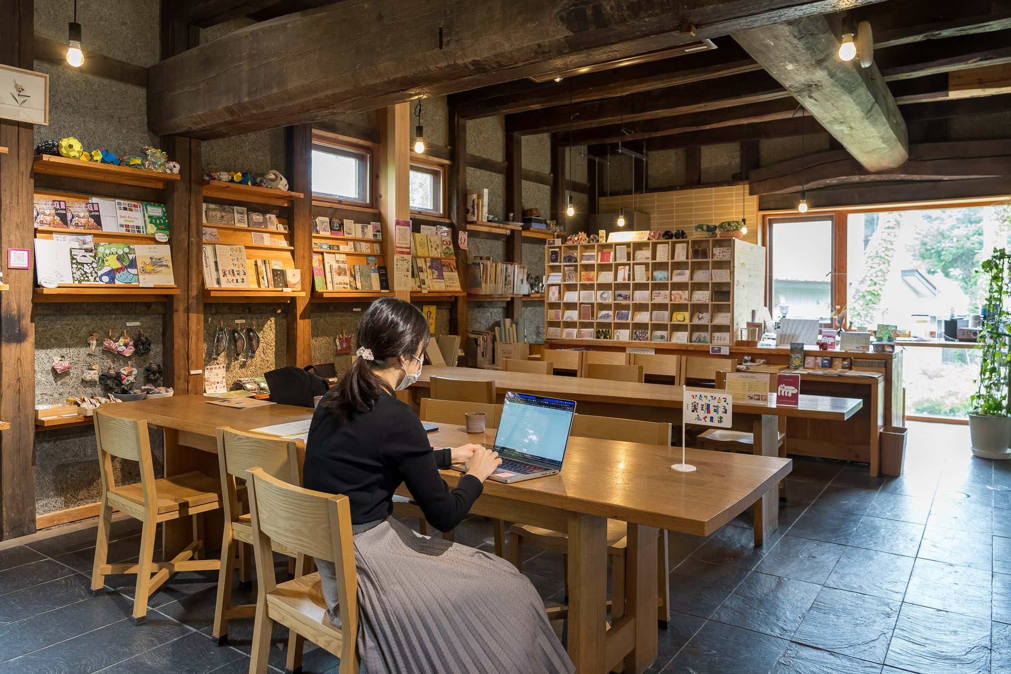 西会津町上野尻地区にある私設公民館「いとなみ」は、地域の営みづくりをサポートし、人々の交流の拠点となることを目的に運営しています。空き家を活用し、2021年6月にオープンしました。1階は自分だけの本棚を持つことができる「一箱本棚オーナー制度」を導入し、約1,500冊を所蔵する図書館、2階は様々な用途で使用できる多目的スペースとなっており、地域の方のみならずどなたでも利用が可能です。