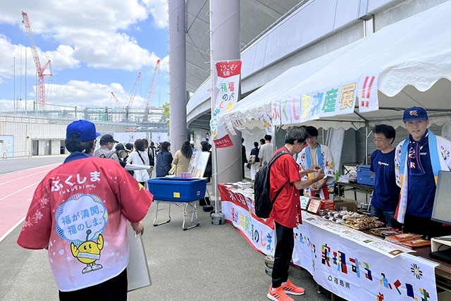 6月に横浜・金沢八景キャンパスで開催された「創造祭・スポーツフェスティバル」では、福島県の職員や日本橋ふくしま館「MIDETTE」のスタッフの皆さんと一緒にPRブースを出展し、県産品の販売やふくしまを学ぶクイズなどにより、地域の方々へ福島県の魅力を発信しました。